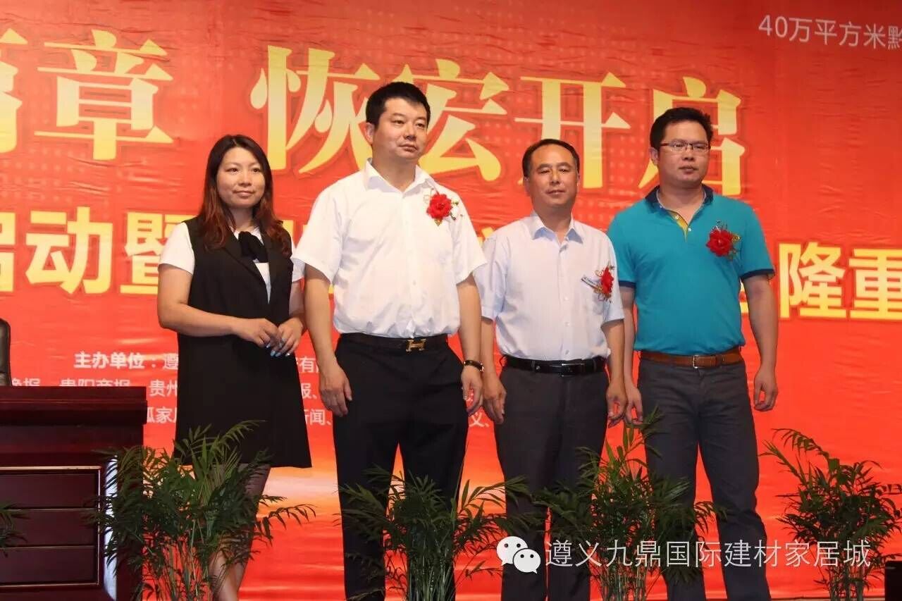 遵義市工商聯(lián)副主席、遵義市總商會副會長張應欽先生表示,九鼎國際建材家居城以“好理念、好模式、好做法”開創(chuàng)了遵義建材家居市場發(fā)展新高度,為遵義市商業(yè)樹立新典范,工商聯(lián)作為黨和政府聯(lián)系企業(yè)的橋梁和紐帶,將積極搭建平臺,加強合作,資源共享,政策扶持,為九鼎國際項目建設和發(fā)展創(chuàng)造良好的環(huán)境。并寄語九鼎國際能繼往開來,以非凡實力打造經(jīng)典之作、榮譽之作!