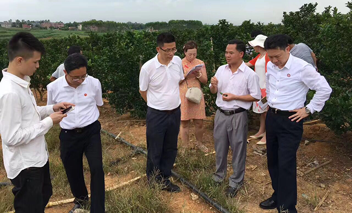 (深圳華錦億爵商業(yè)地產(chǎn)顧問機(jī)構(gòu)總策劃師謝金杏先生(左三)、國(guó)家行政學(xué)院政府經(jīng)濟(jì)研究中心副主任研究員、好易農(nóng)科技有限公司董事長(zhǎng)張?jiān)觳┦浚ㄓ乙唬钊胝{(diào)研貴港市種植業(yè)發(fā)展情況)