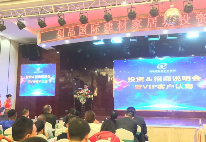 11月23日,創(chuàng)品國際建材家居城“投資&招商說明會暨VIP客戶盛大認籌”活動在衡山神龍盈佳酒店盛大召開。現(xiàn)場500余名來賓歡聚一堂,共同見證了“創(chuàng)品國際建材家居城投資&招商說明會及VIP金卡認籌”這一行業(yè)盛典。