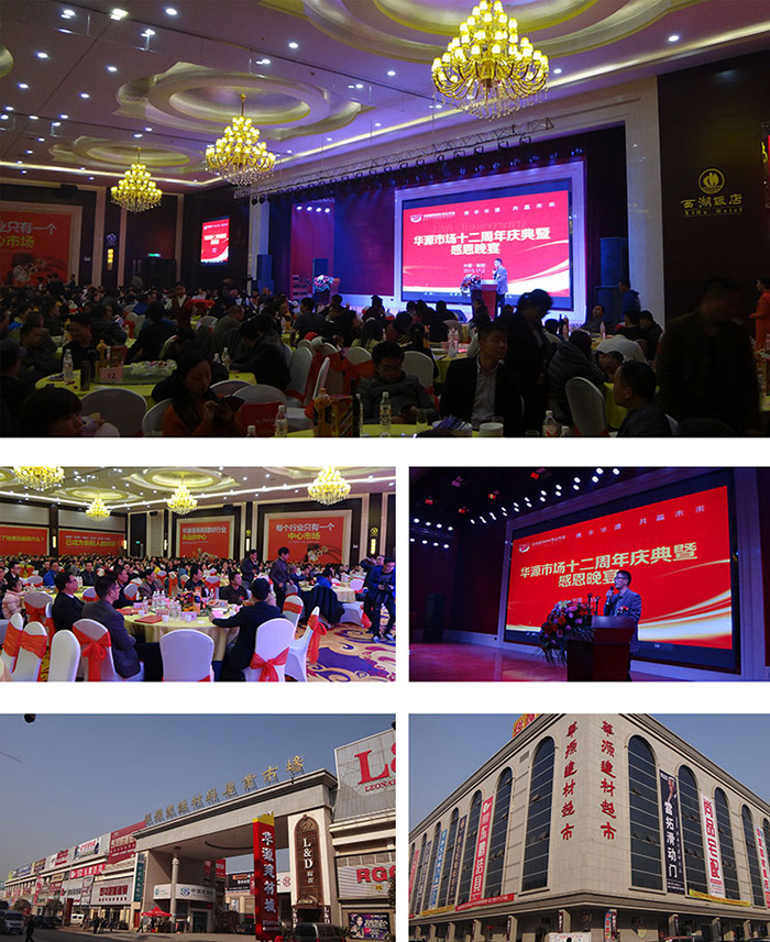 衡陽華源建材市場是湘南地區規模最大、經營種類最齊全的專業建材市場,是全國十大建材市場之一,也是衡陽乃至整個湘南地區建材家居行業的航母。華源建材市場總占地面積280畝,總建筑面積達16萬平方米。市場共分ABCD四個區域,有鋪面1680個,經營戶500多戶,其中A區主營石材、防盜門;B區主營鋁材、管材;C區主營陶瓷、潔具;D區主營瓷磚和板材,另外臨107國道還有油漆一條街。作為衡陽市“十五”重點規劃工程,衡陽“千畝大市場”的首期工程,整個市場匯集了鋁材、陶瓷、木地板、防盜門、不銹鋼等17大類、上萬個品種的國內外知名品牌。其中省級、地區級總代理110余家,占到衡陽地區的80﹪,在整個衡陽乃至湘南地區樹立了龍頭老大的地位。