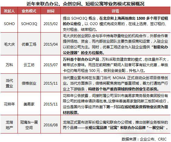 近來,國家不斷出臺支持創業的政策。2015年3月,國務院辦公廳印發《關于發展眾創空間推進大眾創新創業的指導意見》,推進大眾創業。接著,4月國務院又頒布《關于進一步做好新形勢下就業創業工作的意見》,并提出了“推進創客空間等孵化模式”、“眾創空間稅收**”等鼓勵創業,再一次細化支持眾創空間的政策落實。今年以來各地也推出了不同的眾創空間鼓勵細則,加之商辦物業供過于求的現狀,也促進了房企積極謀求聯合辦公、眾創空間、短租公寓等模式的探索。
