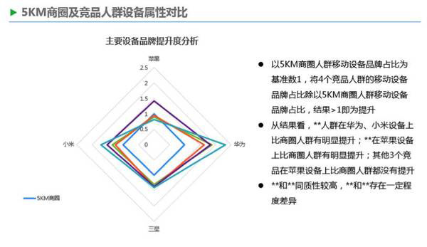 圈取商圈及競品地理圍欄,獲取到的移動設(shè)備數(shù)據(jù)可實現(xiàn)與數(shù)據(jù)中心關(guān)聯(lián)匹配,通過用戶畫像描述其人口屬性特征、設(shè)備使用特征、線上應(yīng)用偏好及線下行為軌跡,更準(zhǔn)確地了解商圈人群及競品客群屬性。